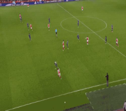 两队的攻防转换节奏相当快,第13分钟,阿森纳在马竞的禁区前连续短传,斯凯利的斜射打得有些偏。