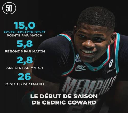赛季至今,考沃德在灰熊打了10场比赛,均是替补。场均出战26.5分钟,得到15分5.8篮板2.8助攻1抢断0.3盖帽1.1失误,三项命中率:55.4%,43.6%,91.2%。场均得分在灰熊队内排名第三,仅次于莫兰特和小贾伦-杰克逊。
