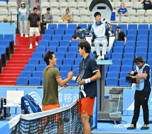 前一日轻松获胜的广西队选手周意,在第二个比赛日开局陷入苦战,面对湖北队年仅17岁的陈烨,他在第一盘虽然破掉了对手的发球胜盘局,但仍在抢七中告负。丢掉一盘后,周意开始奋起直追,最终连扳两盘,以6:7(4)、6:3、6:0逆转获胜。