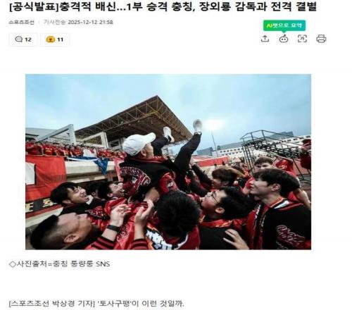韩国媒体连发了多篇报道,标题分别是:《韩国教练就这么不受待见吗?中超第10名球队获最佳教练!》、《震惊足坛的“背叛”:冲超成功的重庆队,与张外龙突然解约》。韩国媒体文中的用词也是显得相当不满,对于2名中超韩国教练的遭遇打抱不平。